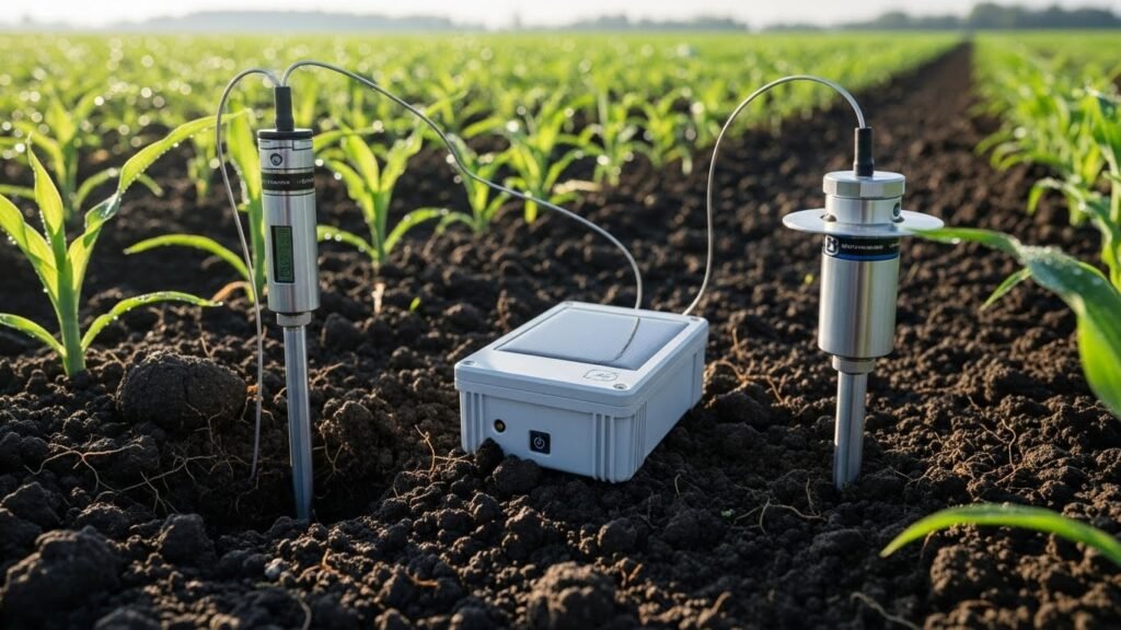 IoT devices collect data on soil moisture, temperature, humidity, and crop health. These devices transmit information to centralized systems for analysis and decision-making.